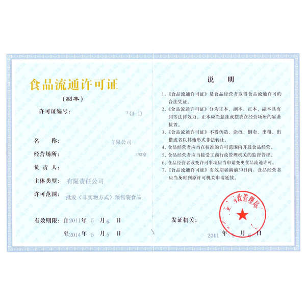 一、辦理食品流通許可證需要如下資料: